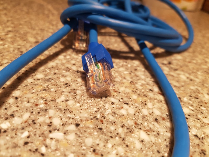 그렇죠. 이렇게 '턱없이 짧은데 어떻게 모뎀에서 방에 있는 컴퓨터까지 연결합니까' 라는 생각이 드실 수 있으십니다. 이럴 때에는 긴 랜선을 사면 끝입니다. 어렵지 않아요. 그냥 랜선을 사면 됩니다. 랜선은 집 근처 어딜 가도 쉽게 구할 수 있습니다. 하지만 알아두어야 할 것이 하나 있어요.